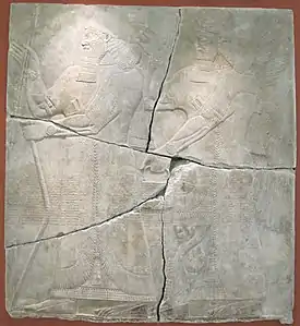 ![]() Рельеф из Кальху с изображением Тиглатпаласара III, выдающегося политического деятеля VIII века до н. э., фактического создателя Новоассирийской державы. Британский музей (Лондон) |