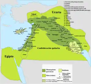 ![]() Зона ассиро-урартской войны при царях Тиглатпаласаре III и Сардури II. 743 до н. э. |