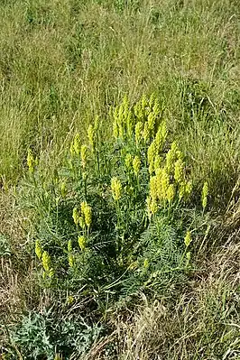 Многолетнее травянистое стержнекорневое растение высотой от 60 до 100 см. Растение сильно опушённое прижатыми волосками. Стебли прямостоячие, бороздчатые, более или менее жёсткие. Листья сложные из 7(8)—10 пар линейно-ланцетных или ланцетно-линейных, коротко заострённых листочков.