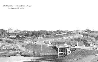 С 1911 года начинается строительство железобетонного моста на месте деревянного. Необходимость строительства была вызвана скорым запуском трамвая[2] 15 декабря 1913 года было завершено строительство Астраханского моста через Царицу.[3]. Это был первый железобетонный мост в городе. Ныне не существует.