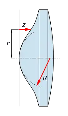 Возможности асферических линз по сравнению со сферическим связаны с параметрами, определяющими форму несферических поверхностей. Так, например, меридиональное сечение поверхности вращения 2-го порядка можно выразить уравнением[1] вида