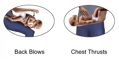 Используйте эти два маневра вручную для младенцев[3] (см. оба рисунка ниже).