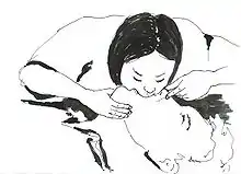 - Используя рот, прикрывайте рот р ебенка и нос одновременно. Подайте воздух таким образом (искусственное дыхание). Снова введите воздух (еще одно искусственное дыхание).
