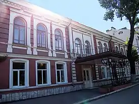 | 55 | Старинный двухэтажный жилой дом, фасад, выходящий на улицу, обильно украшен лепниной: пилястрами по бокам и прямыми сандриками над окнами[7] | |