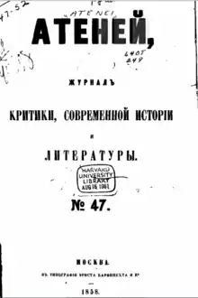 Атене́й. Журна́л кри́тики, совреме́нной исто́рии и литерату́ры. — русский журнал, выходивший ежемесячно с 1 января 1858 по 1 мая 1859 года в Москве под редакцией Евгения Корша. За 16 месяцев вышло 8 книжек ин-октаво.