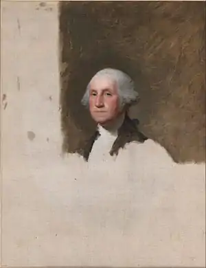 В 1795 году Вашингтон несколько раз позировал Стюарту, итогом чего стали Атенеумский, Лансдаунский и Воганский портреты, названные по именам их владельцев[3]. Воганский существует в нескольких авторских копиях, две из которых хранятся в Национальной портретной галерее[4][5], ещё несколько — в Метрополитен-музее[6] и Коллекции Фрика[7].