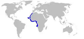 Атлантические полосатые акулы обитают в восточной части Атлантического океана у островов Зелёного мыса и вдоль побережья от Мавритании до Анголы[6]. Возможно, на севере их ареал доходит до Марокко, а на юге до Намибии[7]