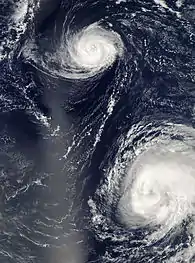 Тропическая Штормовая Зэта сформировалась 30 декабря 2005 и продлилась до 6 января 2006. Хотя большинство его существования было в 2006, это - официально шторм Атлантического сезона ураганов 2005 года, потому что это - год, в котором это сформировалось.Зэта присоединилась к Урагану Элис как только второй Североатлантический тропический циклон в зарегистрированной истории охватила два календарных года.