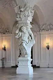 Атла́нт, Атлас (греч. Ά̓τλας, лат. Atlantus - несущий) — в древнегреческой мифологии - титан, брат Прометея. После поражения в борьбе с Олимпийскими богами, в наказание за дерзость был обречен поддерживать на крайнем Западе на своих плечах небесный свод. Фигура Атланта, или Атласа, воплощает образ "могучего носителя", олицетворяет выдержку и стойкость [1]. На старинных гравюрах фигуру Атланта изображали в качестве "оси мира", колонны, разделяющей небо и землю. Отсюда традиция использования скульптурных изображений обнаженной мужской фигуры в качестве опоры, заменяющей колонну или пилон.