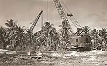 Соединенные Штаты собрали вспомогательный флот из 242 судов, который предоставил жилые помещения, экспериментальные станции и мастерские для более чем 42 000 человек. Острова в основном использовались в качестве мест отдыха и инструментальных средств. Сибис построили на острове бункеры, плавучие сухие доки[6], стальные башни для камер и записывающих приборов и другие объекты для поддержки военнослужащих. К ним относятся «Клуб офицеров Up and Atom» и «Клуб Cross Spikes», бар и заведение, созданное военнослужащими на острове Бикини в период с июня по сентябрь 1946 года. «Клуб» был немногим больше, чем небольшое здание под открытым небом. в котором подавали алкоголь военнослужащим и устраивали развлечения на свежем воздухе, в том числе стол для настольного тенниса[7]. «Клуб Cross Spikes» был единственным развлечением, к которому военнослужащие имели доступ во время их пребывания в Бикини с июня по сентябрь.