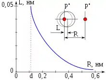 Нейтральный атом водорода, попадая в электрическое поле протона, подвергается деформационной поляризации (см. рисунок). Длина наведённого электрического диполя атома водорода обратно пропорциональна квадрату расстояния между атомом водорода и протоном L = αe E/q = αe/R2 = 0,66/R2