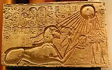 Ато́н — солнечный диск, божество, зримая форма Ра или Ра-Хорахте[2][3]. Фараон XVIII династии Эхнатон в своё правление провозгласил культ Атона.