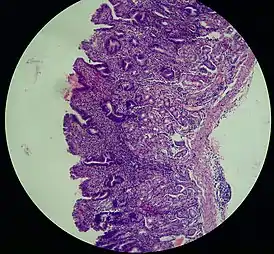 Атрофи́ческий гастри́т (лат. gastritis atrophica) — хронический гастрит с истончением слизистой оболочки, уменьшением количества желез и секреторной недостаточностью желудка.[3]