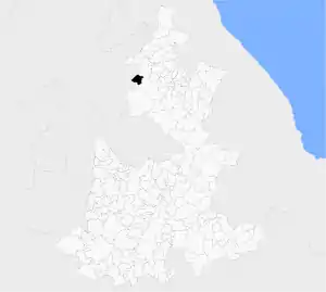 Площадь муниципалитета равна 60,5 км², что составляет менее 0,18 % от площади штата[4]. Он граничит с другими муниципалитетами Пуэблы: на севере с Уаучинанго, на востоке и юге с Сакатланом, а на западе с другим штатом Мексики — Идальго[5].