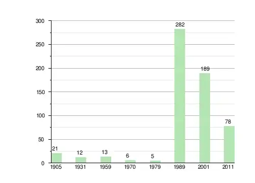 | 1905[3] | 1931[4] | 1959пер.[5] | 1970пер.[5] | 1979пер.[6] | 1989пер.[7] | 2001пер.[8] | 2011пер.[9] |