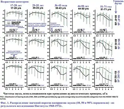 - Linda Rosenstock et al. Criteria for a Recommended Standard. Occupational Noise Exposure. (Revised Criteria). — NIOSH. — Cincinnati, Ohio: National Institute for Occupational Safety and Health, 1998. — 123 p. — (DHHS (NIOSH) Publication No 98-126).. Есть перевод (2016): Рекомендации NIOSH по защите от шума; Приложение: раздел 3. Результаты