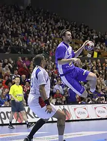 Аусгейр Эдн Хадльгримссон (с мячом) в матче сборной Исландии против Франции, 2010 год