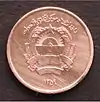 1 афгани | 20 мм | 3,28 г | 1,6 мм | Сталь с медным покрытием | Гладкий | Герб Афганистана | Номинал и год выпуска | 2004-2005 | ||||