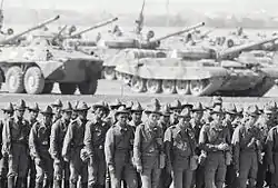 В качестве резерва в обоих округах были отмобилизованы ещё три дивизии. В части и соединения 40-й общевойсковой армии по состоянию на 27 декабря 1979 года было призвано из Узбекистана, Туркмении и Таджикистана более 32 тысяч военнослужащих запаса и получено более 9 тысяч автомобилей из народного хозяйства. Личный состав 5-й мотострелковой дивизии на 43,5 % состоял из представителей местных национальностей, а в 108-й мотострелковой дивизии 64 % были представителями местных национальностей[82]. Это было крупнейшее мобилизационное развёртывание Советской Армии с 1945 года.