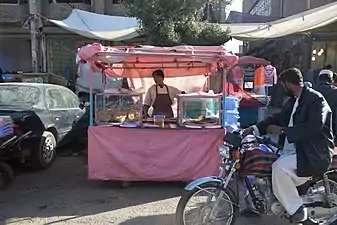 Чайхана — небольшое кафе, в котором мужчины собираются, чтобы поговорить за чаем, либо, если заведение достаточно большое, и закусками вроде «шерва-э-чайнаки» (буквально «суп из чайника»): в чайник кладут баранину, лук, горох, свежий кориандр, соль и перец, а затем медленно варят рядом с чайным самоваром или прямо на нём[10]. Рядом со многими чайханами находятся шашлычные, в которых подают бараний шашлык с луком, кориандром и помидорами, фрикадельки «кофта», баранину, жареную с небольшим количеством соли и без специй «шинвари», бараньи яички и другие блюда[10].