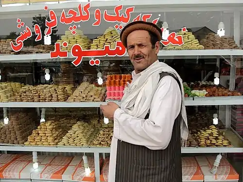 Во время Ид-аль-Фитра афганцы посещают родственников и пьют с ними чай с особыми десертами: козинаками с грецкими орехами и миндалём («халва-э-сванак»), нугой с орехами «шир-пайра», выпечкой «гош-фил» («слоновье ухо»)[11].