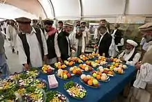 Афганистан — аграрная страна, там выращивают множество фруктов, овощей и орехов. За границей прославились афганские дыни, арбузы и местный виноград, который употребляют как в сыром виде, так и в виде изюма; также культивируют гранаты, сливы, вишню, шелковицу, айву, абрикосы, нектарины, яблоки и груши; репчатый лук, картофель, томаты, баклажаны, лук-шалот, стручковую фасоль, бамию, белокочанную и цветную капусту, редис, тыкву, кабачки и подобные овощи[3]. В субтропиках Джелалабада растут бананы, лимоны и апельсины.