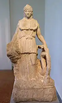 Изображение богини Афины, покровительницы города Афины. Была установлена на вершине Акрополя, в главном храме, — Парфеноне.