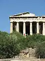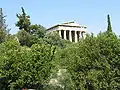 Над агорой на холме Колоне Агорском на западе возвышался храм Гефеста и Афины (середина V века до н. э.), известный как Тесейон[8].