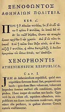 - Xenophon. Atheniensium respublica [spuria] // Xenophontis opera omnia. Ed. E. C. Marchant. Oxford: Clarendon Press, 1920 (repr. 1969). Vol. 5.