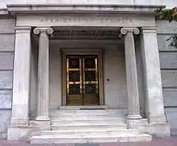 Создано почти сразу после воссоздания греческого государства, в 1837 году, по инициативе и при финансовом содействии мецената Константина Веллиоса, с целью оказать помощь государственной археологической службе. Общество осуществило, со дня своего создания, большое число археологических исследований, в разных регионах Греции. Управляется Советом (одиннадцати) директоров, который избирается каждые 3 года на Генеральном собрании. Каждый год Общество издаёт «Протоколы Археологического общества» (138 томов, 1837—1982), где публикуются аналитические рапорты о его деятельности в Греции, «Археологическую газету» (122 томов, 1837—1983), где публикуются различные исследования и «Отчёт Археологического общества» (в мае каждого года) (32 тома, 1954—1985), с краткими докладами о раскопках. Также, раз в 3 месяца, издаёт журнал «Ментор» с новостями и статьями о археологии в Греции. Издаёт также многочисленные монографии на археологическую тематику. Общество издало 102 тома Библиотеки Археологического общества (до 1993 года) и 12 томов серии «Древние площадки и музеи Греции»[1]. Большинство раскопок Общества было произведено на средства его акционеров[2]. Душою Общества были его Генеральные секретари, прослужившие каждый многие годы на этом посту: