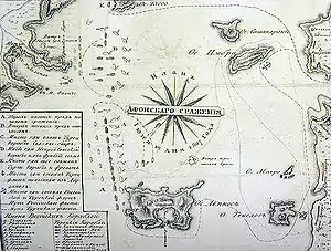 ![]() А. П. Боголюбов «Афонское сражение 19 июня 1807 года» | |||