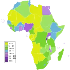 Во время колониального освоения материка многие государственные границы проводились без учёта этнических особенностей, что до сих пор приводит к межэтническим конфликтам. Средняя плотность населения Африки составляет 30,5 чел./км² — это значительно меньше, чем в Европе и Азии.