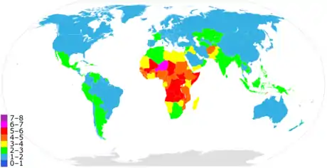 К 2100 году 5 из 10 крупнейших по населению стран мира, по прогнозам, будут в Африке. По прогнозам, на шесть стран будет приходиться более половины прироста населения мира до конца этого столетия, а пять будут находиться в Африке. Ожидается, что население мира вырастет примерно на 3,1 миллиарда человек в период с 2020 по 2100 год. Более половины этого прироста ожидается в Нигерии, Демократической Республике Конго, Танзании, Эфиопии и Анголе, а также в одной не африканской стране (Пакистан). По прогнозам, к 2100 году пять африканских стран войдут в первую десятку стран мира по населению. Прогнозируется, что Нигерия превзойдёт США как третью по величине населения страну в мире в 2047 году. Ожидается, что к 2100 году половина детей, рождённых во всем мире, будут рождены в Африке. Африка перегонит Азию по количеству рождённых детей к 2060 году. Половина всех рождённых детей в мире, как ожидается будет в Африке к 2100 году, по сравнению с тремя из десяти всех рождённых детей мира в 2019 году. Ожидается, что в период с 2020 по 2100 год в Нигерии родится 864 миллиона детей, что является самым большим показателем среди африканских стран. По прогнозам, число рождений в Нигерии к 2070 году превысит число рождений в Китае. Между тем, для примера, согласно прогнозам, к концу этого столетия в Азии родится примерно треть детей мира, по сравнению с примерно половиной сегодня и с 65 % в период 1965-70 годов.[25][26]