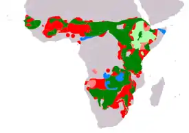 ![]() Круглогодично Вероятно круглогодично Районы миграции Исчез Вероятно исчез |