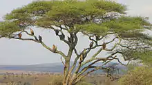 Обычно африканские грифы образуют небольшие группы, состоящие из 5—20 пар. Но есть как и одиноко живущие особи и особи живущие отдельными парами, так и очень многочисленные колонии. Птицы селятся на нескольких соседних деревьях. Могут строить гнёзда на одном дереве — вплоть до 5 гнёзд.