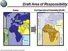 До создания нового командования территория африканского континента входила в зоны ответственности трёх различных командований — Командования вооружённых сил США в Европе (вся Африка, за исключением её северо-восточной части и Африканского Рога), Центрального командования вооружённых сил США (Египет, Судан, Эритрея, Эфиопия, Джибути, Сомали, Кения и Сейшельские острова) и Командования вооружённых сил США в зоне Тихого океана (Мадагаскар и Индийский океан).