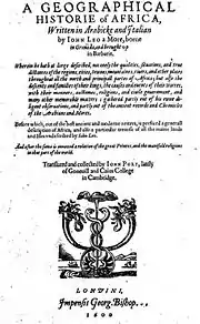 - Leo Africanus. A Geographical Historie of Africa, written in Arabicke and Italian. Before which is prefixed a generall description of Africa, and a particular treatise of all the lands undescribed. Translated and collected by John Pory. — London: G. Bishop, 1600. (англ.)
