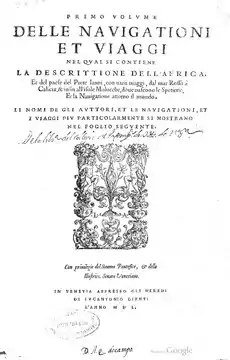 - Ramusio, Giovanni Baptista. Della descrittione dell’Africa et delle cose notabili che iui sono, per Giovan Lioni Africano // Delle Navigationi Et Viaggi (Primo Volume): In Molti Lvoghi Corretta, Et Ampliata, Nella Qvale Si Contengono La Descrittione Dell’Africa, & del paese del Prete Ianni, con varij viaggi … et la Nauigatione attorno il Mondo …. — In Venetia, 1550. (итал.)