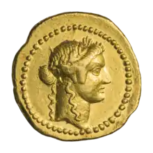 Изображения Венеры встречаются на ауреусах Римской республики (в частности, чеканенных при монетарии Гае Вибии Варе[2]), а также императоров Марка Аврелия[3] и Кара[4].