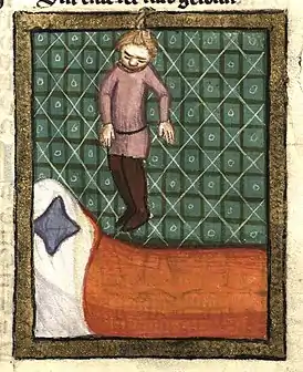 ![]() Самоубийство Ахитофела. Миниатюра из «Всемирной хроники» Рудольфа Эмсского. | |