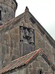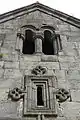 Отдельно стоящая трехъярусная колокольня (1245) с семигранной ротондой-звонницей послужила образцом для поздних колоколен, например в Карсе.