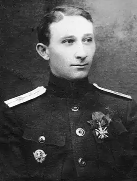 Участник Первой мировой войны, был дважды ранен. Согласно печатным источникам в годы войны служил в составе авиадивизиона Российского императорского военно-воздушного флота (РИВВФ) из 10 бомбардировщиков «Илья Муромец», участвовавшего в боевых операциях русской авиации, бомбардируя тылы германских войск (коммуникации, склады и т. п.)[4].