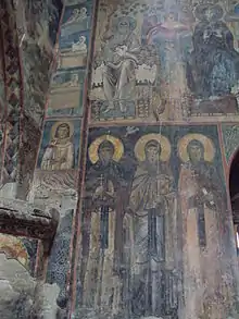 - Isabelle Augé (Maître de conférences, Université Paul Valéry) «Le choix de la foi chalcédonienne chez les Arméniens» (Cahiers d’études du religieux. Recherches interdisciplinaires. 9/2011):Оригинальный текст (фр.)[показатьскрыть]Cette multiplicité d’influences, arménienne, grecque, géorgienne, se retrouve dans l’art des Arméniens chalcédoniens que l’on peut apprécier surtout à travers les fresques partiellement conservées de deux monastères de Grande Arménie, celui de Kobayr et celui d’Axt‘ala. Les murs et les peintures portent des inscriptions en arménien, mais aussi en grec ou encore en géorgien. Les programmes iconographiques sont également intéressants puisque, d’après A. Lidov, ils ne peuvent être assimilés ni à des programmes géorgiens, ni à des programmes arméniens, ni à des programmes byzantins, mais combinent les trois.