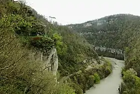 ![]() Вид на Ашхтырское ущелье от Ашхтырской пещеры | |