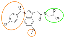 Представляет собой сложный эфир гликолевой кислоты и индометацина. На вид мелкий, слегка желтоватый кристаллический порошок, плавящийся при температуре от 150 до 153 °C[1].