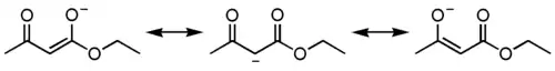 Под действием сильных оснований и щелочных металлов ацетоуксусный эфир депротонируется с образованием резонансно стабилизированного аниона: