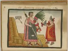 Следующим тлатоани был избран Монтесума II, также известный как правитель ацтекской империи в период прибытия испанцев в долину Мехико. Монтесума II преуспевал в правлении Ауисотля и свою компанию коронации проводил вместе с осадой города Нопаллан в Оахаке и подчинением соседнего региона империи. Монтесума, продолжая традицию предшественника, организовал завоевания больших городов в Герреро, Оахаке, Пуэбло и даже далеко на юге вдоль побережья Тихого океана, покорив провинцию Шоночко в ныне штате Чьяпас. Монтесума также организовал цветочные войны с Тлакскалой и Уэхоцинго и заключил союз с Чолулой. Кроме того, он реформировал классовые структуры ацтекского общества, усложнив процесс вступления в знатное сословие, которое ранее было возможно, если человек доказывал свою доблесть в бою. Он также ввел строгий кодекс, ограничивающий доступ к предметам роскоши, доступный представителям низших сословий[37].