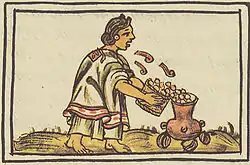 Кукуруза была самым важным продуктом питания у ацтеков. Она потреблялась во время каждого приёма пищи всеми социальными классами и играла центральную роль в ацтекской мифологии. Некоторым из первых европейцев в Америке ацтеки описывали кукурузу как «драгоценность, наша плоть, наши кости». Она была представлена огромным количеством сортов различного размера, формы и цветов: жёлтого, красноватого, белого с полосками других цветов, чёрного с или без пятен и синеватого варианта, который считался особенно ценным. Бесчисленные прочие местные и региональные разновидности растения также существовали, но лишь немногие из них были описаны. Кукурузу почитали до такой степени, что женщины дули на кукурузу, прежде чем положить её в кастрюлю, чтобы та не боялась огня, и любая часть кукурузного початка, которая случайно падала на землю, поднималась, а не пропадала впустую.