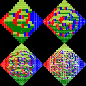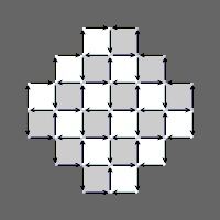 - Генерация. Доказано, что в результате двух предыдущих стадий все пустые клетки в области ацтекского бриллианта размера можно разбить на квадраты размера 2x2. На стадии генерации каждый такой квадрат отдельно заполняется равновероятно либо двумя вертикальными, либо двумя горизонтальными плитками.