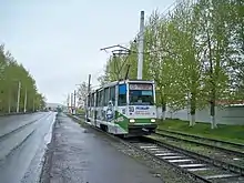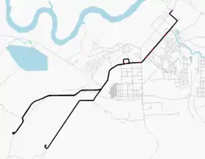 Пригородная часть ветки между городской частью и промзоной проложена на обособке по обочине дороги на промзону.